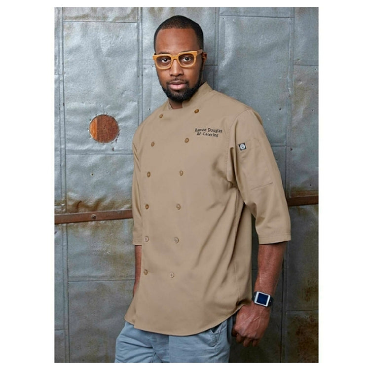 The Chef Works S100-BLK-S Chef Shirt Double-breasted 3/4 Sleeves is a professional-grade culinary apparel designed for foodservice operators requiring durable, comfortable chef garments. Crafted from a 65/35 poly/cotton twill, this unisex chef's coat offers a classic fit with a double-breasted design, back yoke, and curved hem. Its features include matching buttons and a thermometer pocket, optimized for efficiency in high-volume commercial kitchens. Perfect for restaurant kitchens, catering services, and food preparation environments, this chef shirt ensures durability and ease of maintenance, supporting daily performance in demanding culinary workflows.
