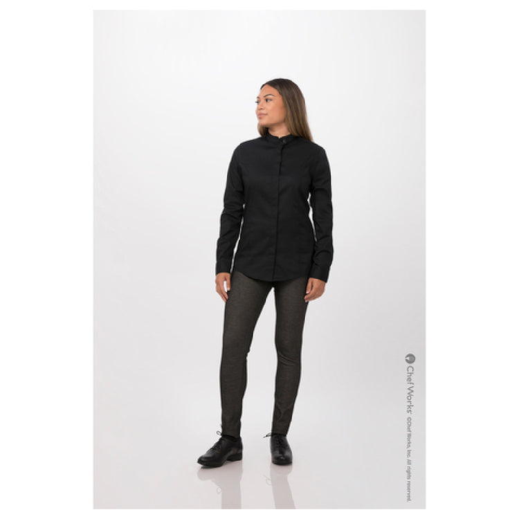 Chef Works SFB01W-BLK-M Women's Dress Shirt Medium Black Banded Collar with Adjustable Cuffs
