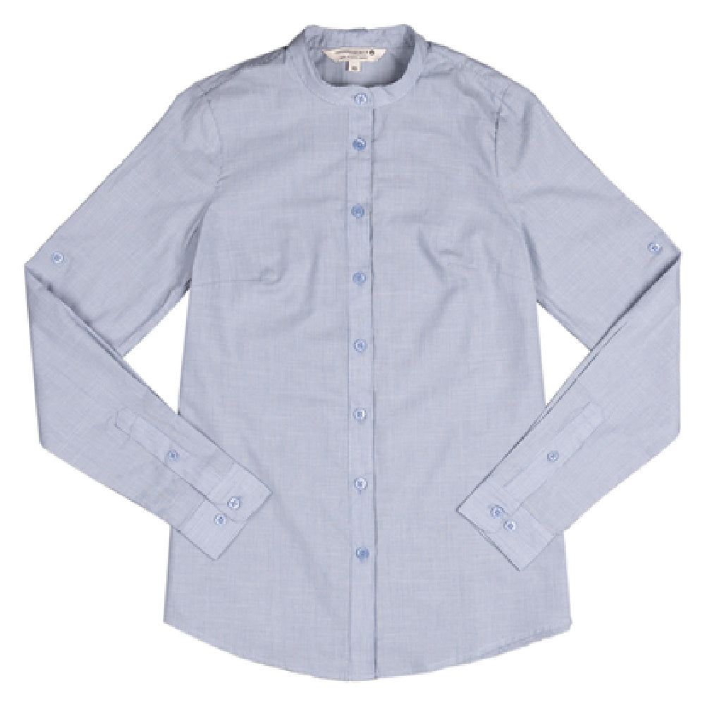 Chef Works SFB02W-BLU-M Women's Dress Shirt Medium Blue Roll-up Sleeves with Button Tab