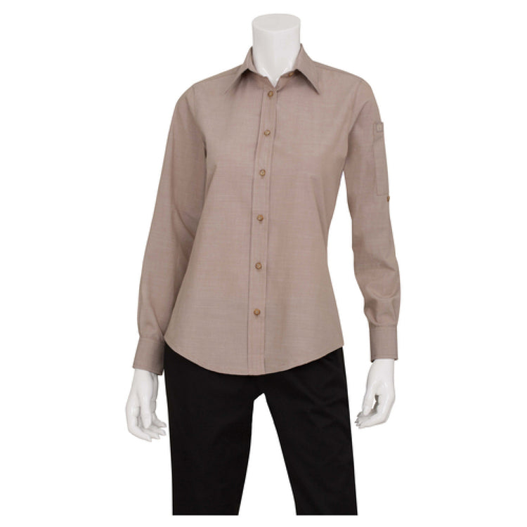 Chef Works SLWCH002ECR2XL Women's Dress Shirt 2XL Chambray Anti-wrinkle