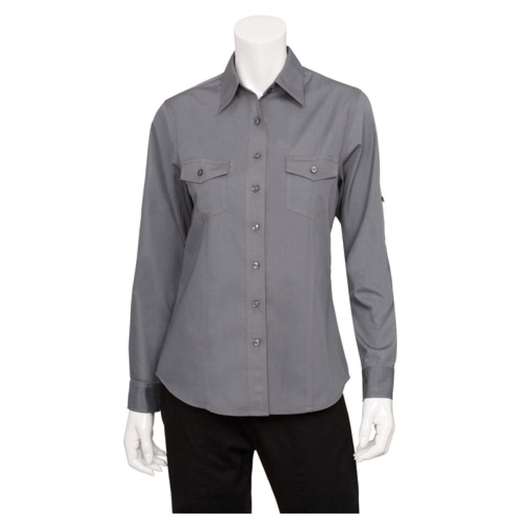 Chef Works WPDS-GRY-XL Women's Cook's Shirt Gray Roll-up Long Sleeves