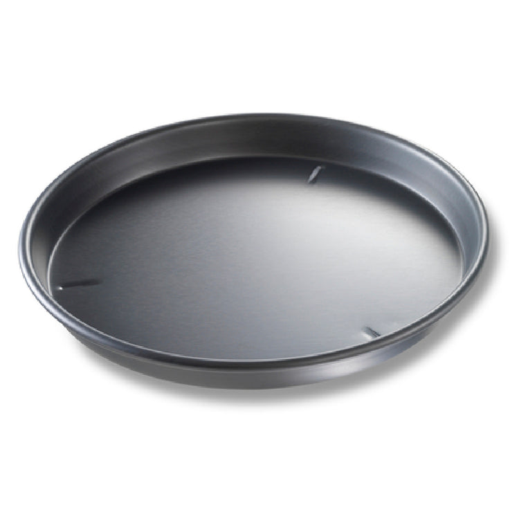 The Chicago Metallic 91140 BĀKALON Deep Dish Pizza Pan is a professional-grade bakeware essential for commercial kitchens specializing in pizza preparation. Crafted from 14 gauge hardcoat anodized aluminum, this 14-inch diameter pan features a 1-1/2-inch depth, ideal for creating evenly cooked, deep-dish pizzas with consistent crust texture. Its embossed feet facilitate airflow and ease of handling, making it suitable for high-volume pizza production lines and bakery operations. Designed for durable performance, the pan’s solid construction ensures long-term resistance to warping and corrosion, supporting rigorous service in busy restaurant environments. The pan is optimized for use with standard commercial oven temperatures and is finished in a plain, non-stick surface to promote easy cake release and cleaning, with hand wash recommended for maintenance. Its nestable design allows efficient storage in commercial kitchens, maximizing space for large inventories and rapid throughput. Made in the USA with global materials, this pizza pan is a reliable choice for professional foodservice providers demanding precise specifications and consistent results.