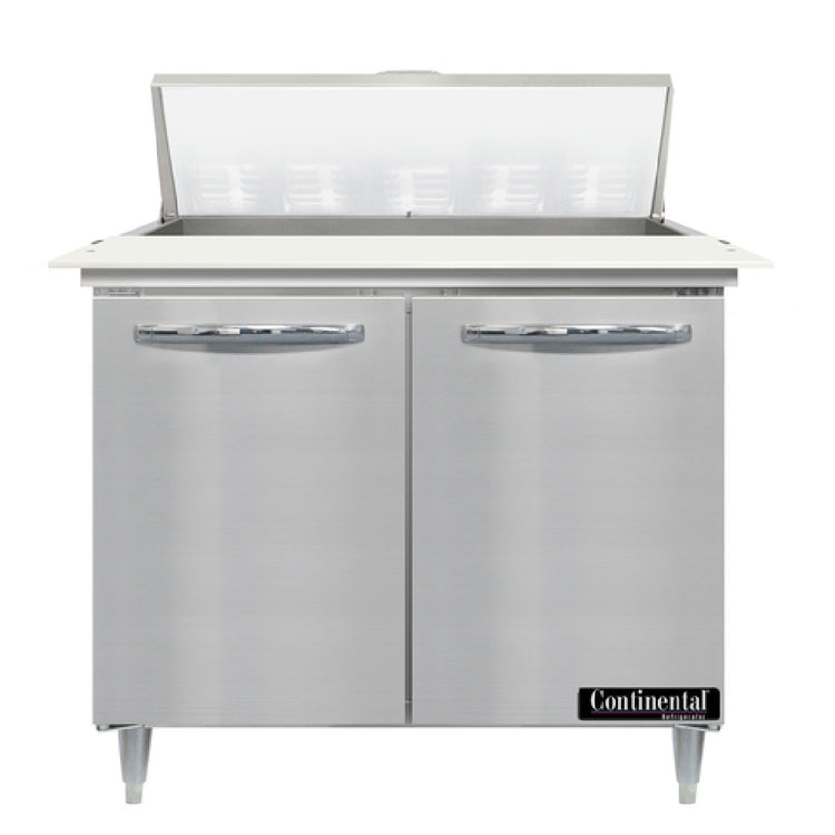 Continental Refrigerator D36N10C 36 Inch Two Section Sandwich Unit Stainless Steel with Pans