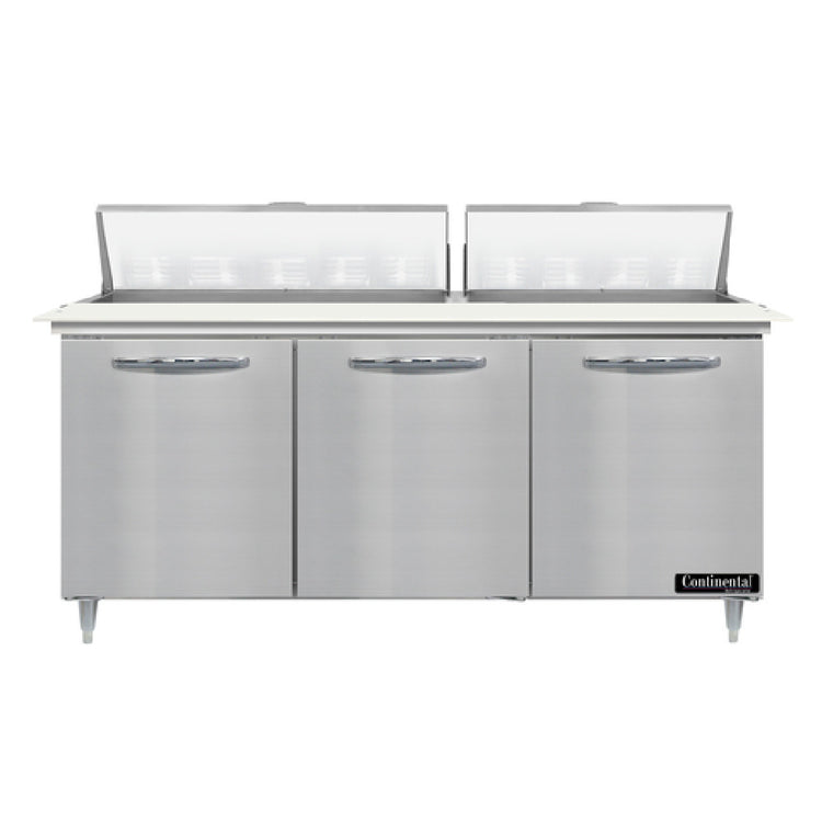 Continental Refrigerator D72N18C 72 Inch Sandwich Unit Three Section Stainless Steel with Pans