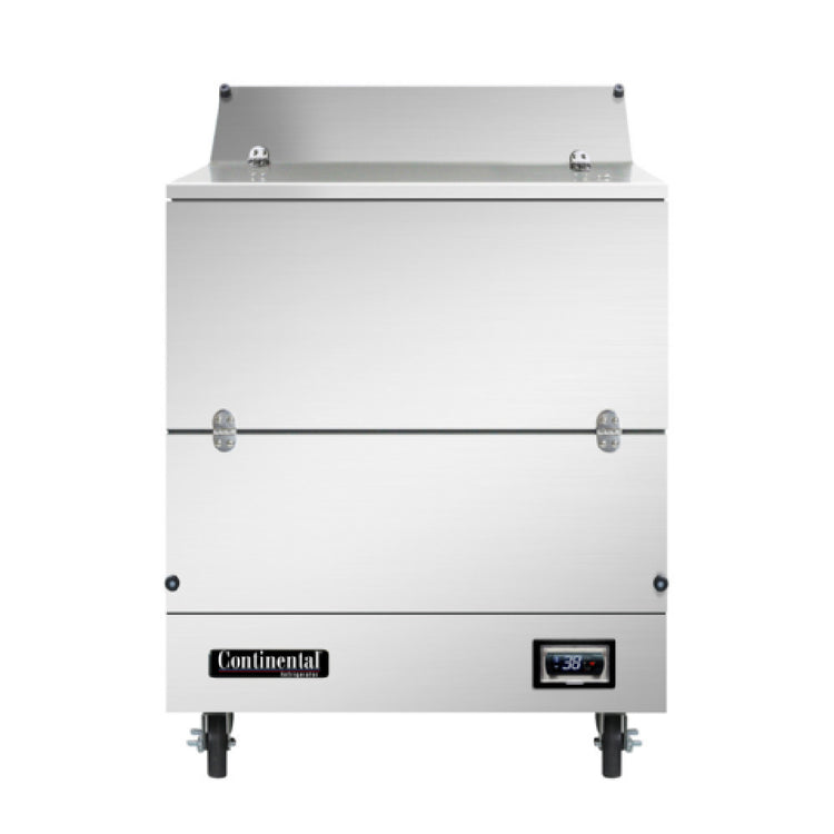 The Continental Refrigerator MC3NSSD differs from competitors through its robust all-stainless steel design, precise digital control system, and dual access doors that streamline workflow. Its energy-efficient forced air cooling and strong corrosion-resistant construction ensure long-lasting performance and sanitation in demanding foodservice environments. This model’s capacity and mobility features make it ideal for mid-volume dairy storage, enhancing operational efficiency and hygiene across commercial kitchens.
