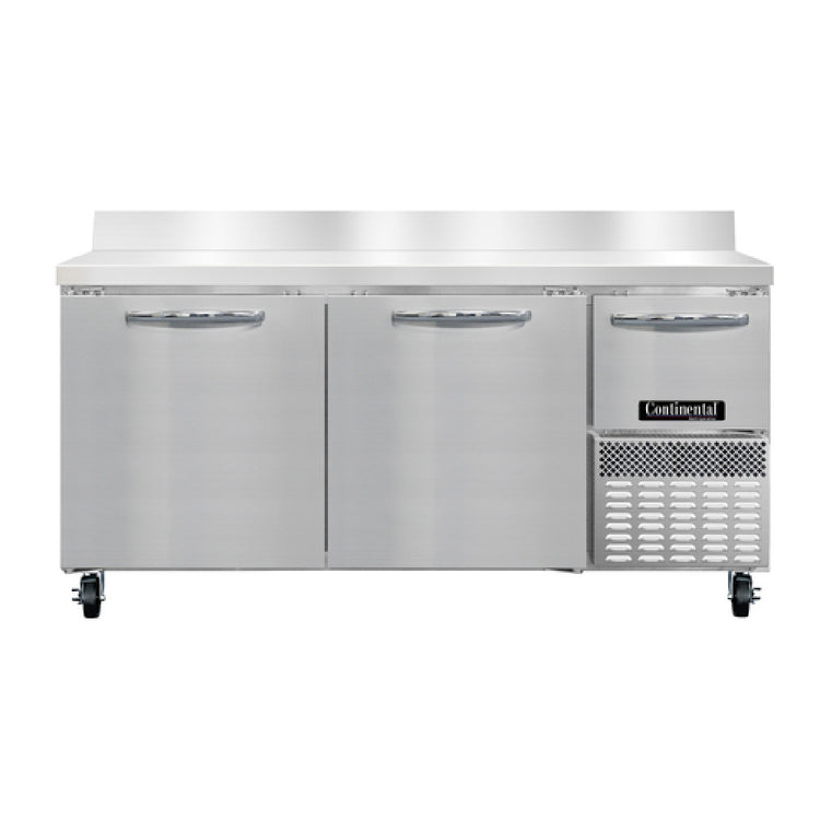 Continental Refrigerator RA68NBS 68 Inch Refrigerated Base Worktop Unit Stainless Steel with 6 Inch Backsplash
