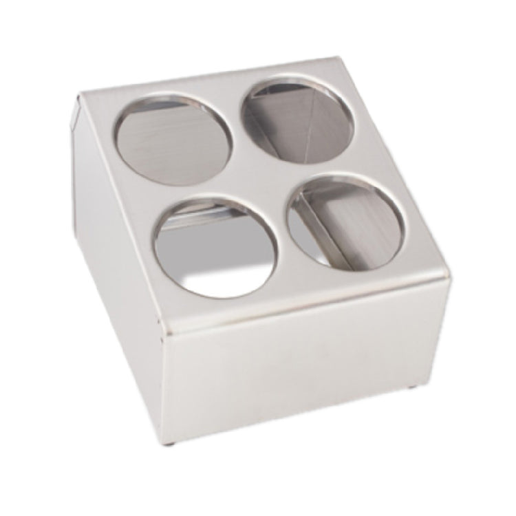 The Crestware CFD4 Flatware Dispenser 4 Hole Counter Top is a commercial-grade stainless steel cylinder holder designed for efficient organization of flatware in high-traffic foodservice environments. featuring a durable stainless steel construction, this dispenser offers four separate compartments and rubber feet for stability on countertop surfaces. Its precise design facilitates quick access, streamlining workflow in restaurants, cafeterias, and catering setups, with a compact footprint suitable for tight kitchen spaces.