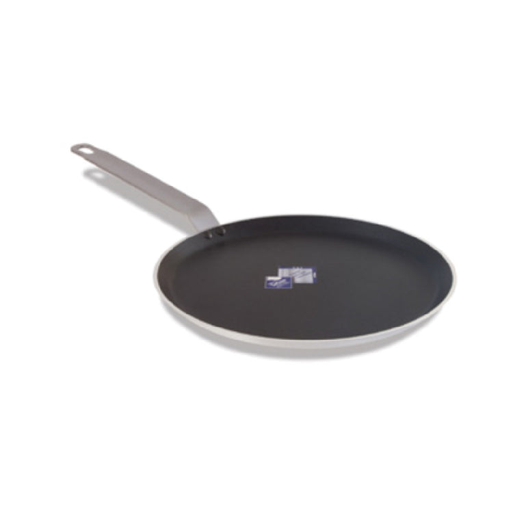 The Crestware CRE8 Crepe Pan 8-1/2" Dia. Teflon™ Xtra Non-stick Coating is a commercial-grade cookware item designed for professional foodservice environments. Crafted from 3004 aluminum, this crepe pan features a durable Teflon™ Xtra non-stick coating that ensures optimal food release and ease of cleaning. Its 8-1/2-inch diameter makes it suitable for precision crepe and pancake preparation, facilitating uniform heat distribution for consistent results in high-volume kitchens. Built for durability and efficiency, this crepe pan is an essential tool for restaurants, catering operations, and culinary establishments focused on high-quality, handmade crepes and similar delicate foods.