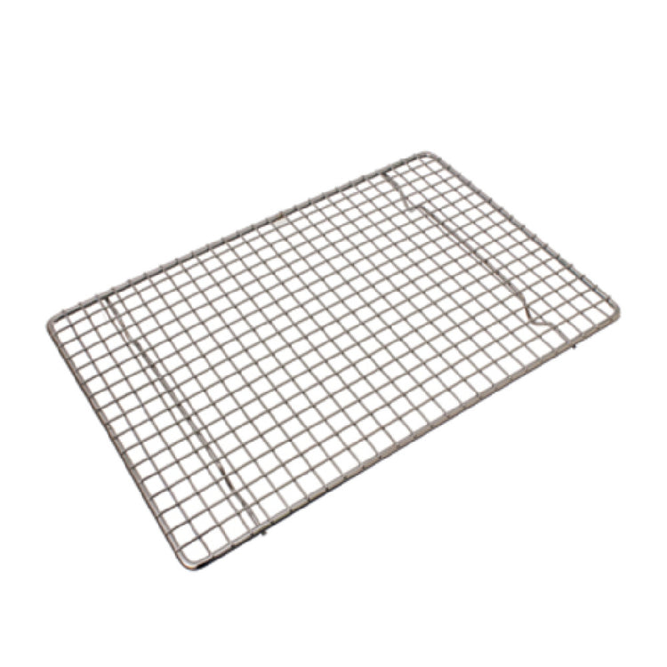 A commercial wire pan rack or grate is a heavy-duty, open-wire support platform designed for use in foodservice establishments. The Crestware GRA913 model is installed within baking or cooling stations to support sheet pans, promote airflow, and facilitate even cooking or cooling. Specifically engineered from zinc material, it withstands frequent cleaning and high temperatures encountered during baking or roasting. These grates are typically used in bakeries, commercial kitchens, and food preparation areas for staging baked goods or cooling hot items efficiently. When matched with standard sheet pans, this grate enhances workflow and ensures consistent food quality in mid-volume throughput environments.