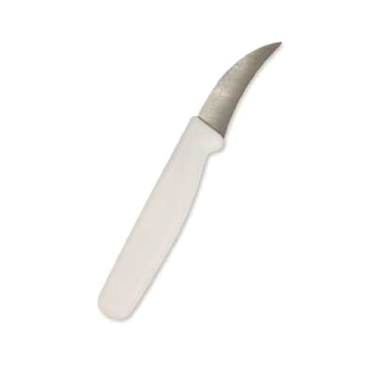 The Crestware KN01 Peeling Knife features a high carbon German steel blade measuring 2-3/4 inches in length, designed for exceptional sharpness and edge durability. Its stamped style ensures a lightweight profile at approximately 0.05 lbs, facilitating maneuverability in fast-paced environments. The polypropylene handle, finished in white, provides a sanitary, impact-resistant grip. Constructed for versatile kitchen applications, the knife maintains maximum operational performance within typical temperature ranges used in food prep, and its material safety supports frequent cleaning protocols. It is designed for commercial kitchen use, fitting seamlessly into prep stations where precision and longevity are critical.