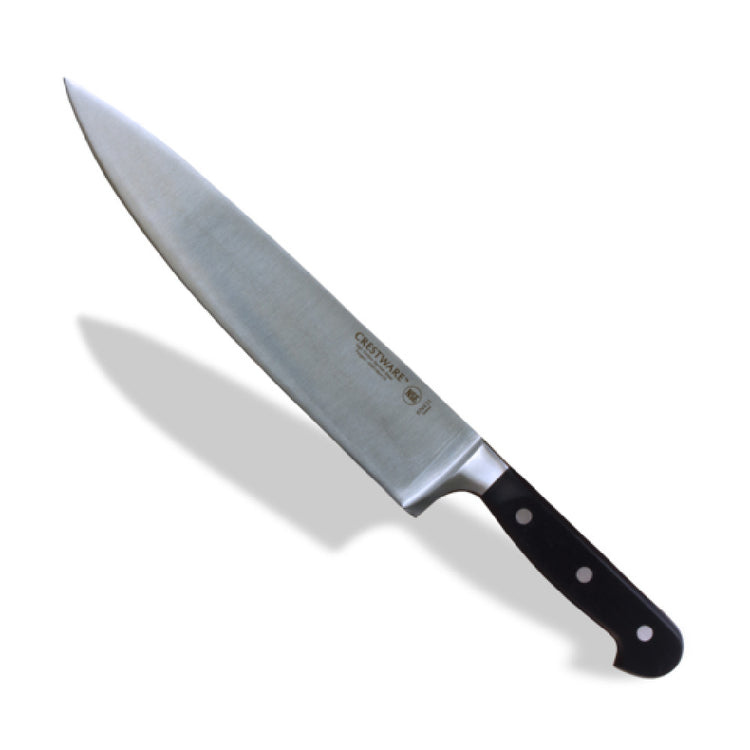 Crestware KN431 10 Inch Forged Cooks Knife High Carbon Steel Black Handle