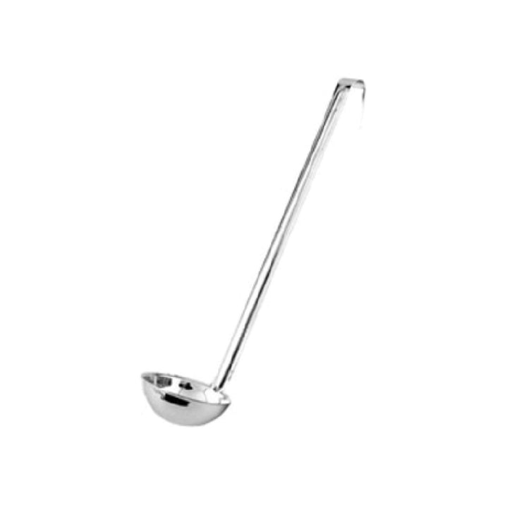 A commercial ladle serving utensil is a professional-grade utensil designed for portioning liquids such as soups, sauces, and stews in high-volume foodservice settings. Crafted from durable stainless steel, it typically features a balanced handle for precision pouring and a capacity suited for efficient service. The Crestware OPL08 Ladle offers 8 oz. capacity, constructed from 18/0 stainless steel with a one-piece design that ensures longevity. It is commonly used in restaurants, cafeterias, and buffet lines to deliver consistent portions while maintaining ease of cleaning and sanitation. Its robust construction and ergonomic form make it suitable for continuous operation in demanding environments, including busy kitchens and institutional kitchens, supporting fast-paced workflow efficiency.
