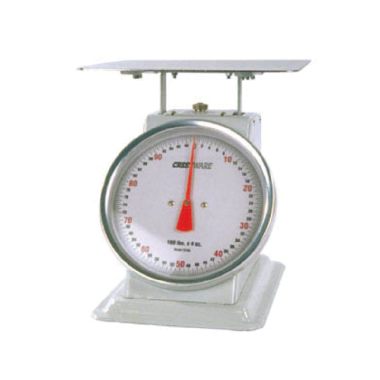 Designed for moderate-volume foodservice environments, this durable Crestware SCA10100 dial scale features a robust construction and precise measurement function, ideal for ingredient receiving, bulk inventory, and portioning tasks. Its reliable performance and large platform support efficient workflows in commercial kitchens and catering operations.