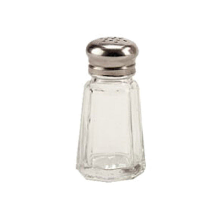 A commercial salt and pepper shaker is a durable, professionally designed condiment dispensing device suitable for high-volume foodservice environments. Typically constructed from impact-resistant glass or metal, these shakers feature precise portion control, often with features such as mushroom caps or perforated tops to optimize seasoning flow. The Crestware SHKR41M shaker exemplifies this category; it uses a glass jar with a mushroom cap top, designed for easy refilling and cleaning, ideal for restaurant tables, buffet lines, and catering setups. Its capacity of 1 ounce per unit makes it suitable for frequent use in busy kitchens, supporting efficient seasoning distribution and inventory monitoring during high-volume operations.