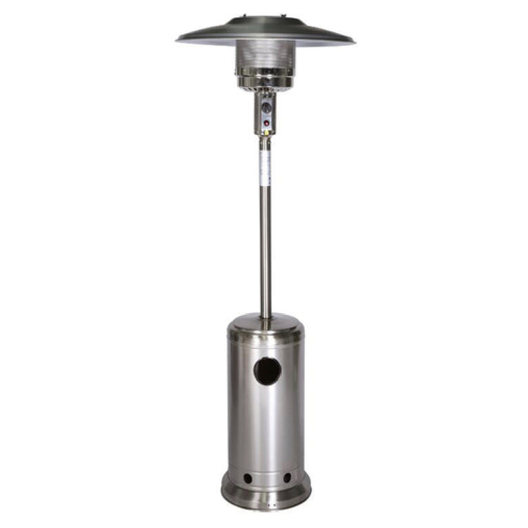 The Crown Verity CV-2620-SS Patio Heater is a commercial-grade portable propane heating solution designed for outdoor foodservice environments. Constructed from durable stainless steel, it features an 18-1/4" base with a 35-1/2" reflector diameter and stands at a height of 90 inches, providing consistent heat output for hospitality settings. Compatible with 20 lb. or 30 lb. propane cylinders (not included), this model employs a Piezo electric ignition system for reliable startups, water resistance for outdoor durability, and an adjustable heat output to meet variable ambient conditions. Its precise technical build supports efficient operation in outdoor patios, catering zones, or dining patios, making it an ideal choice for commercial foodservice professionals seeking robust, mobile heating units with reliable performance.