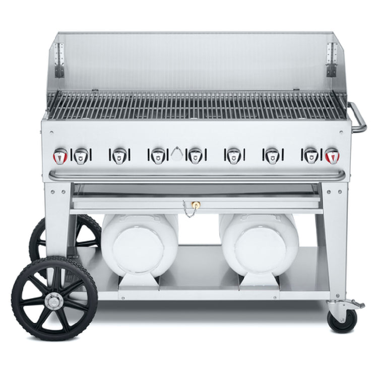 Constructed from premium stainless steel, the Crown Verity CV-CCB-48WGP is designed for outdoor commercial kitchens, supporting medium workloads with high-performance LP gas burners suitable for patio cooking and catering operations. Its durable, portable design ensures efficient workflow and consistent grilling in outdoor hospitality environments.