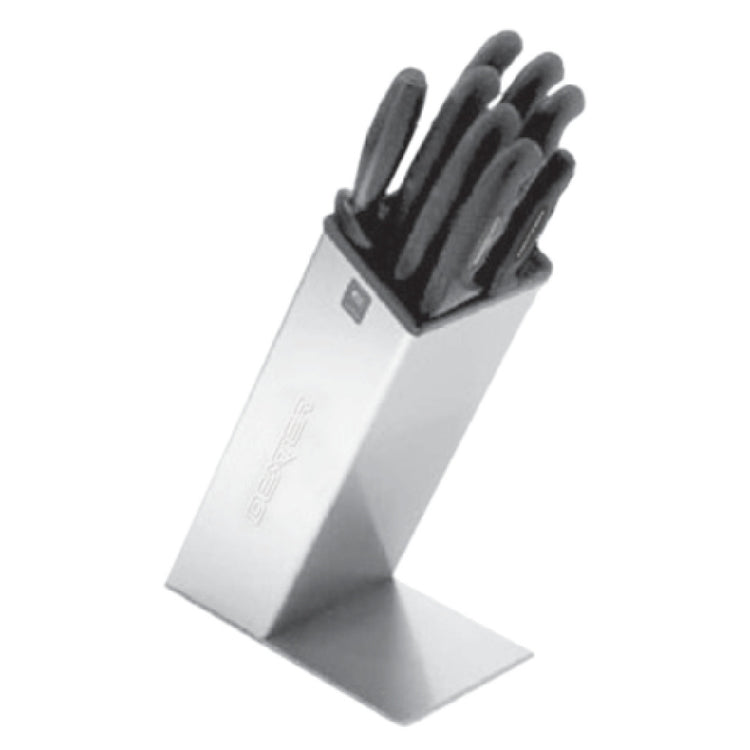 The Dexter 20323 SofGrip™ (SB-6) Knife Set offers a comprehensive package with a stainless steel knife block, providing organized storage for six precisely engineered knives. The set measures 18.75" W x 9.37" D x 6.5" H and weighs 7 lbs, optimized for countertop use in high-traffic foodservice venues. The included 12" diamond sharpener ensures easy blade maintenance, supporting consistent sharpness across all knives. The blades feature a corrosion-resistant stainless steel construction, designed for commercial sanitation and ease of cleaning. The set operates without electrical requirements, fitting seamlessly into existing kitchen setups, and is built for intense daily use in restaurant, catering, and institutional kitchens.