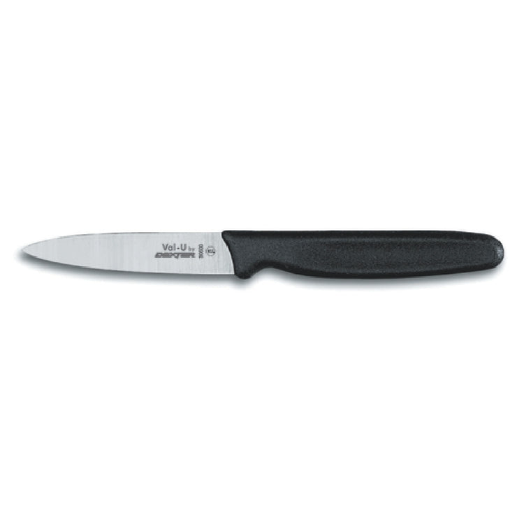 Dexter Russell, 30500, Val-U™ (30500) Paring Knife, 3-1/2" blade, stamped, straight edge, DEXSTEEL™ stain free, high carbon steel, finger guard on handle, polypropylene handle, black, NSF