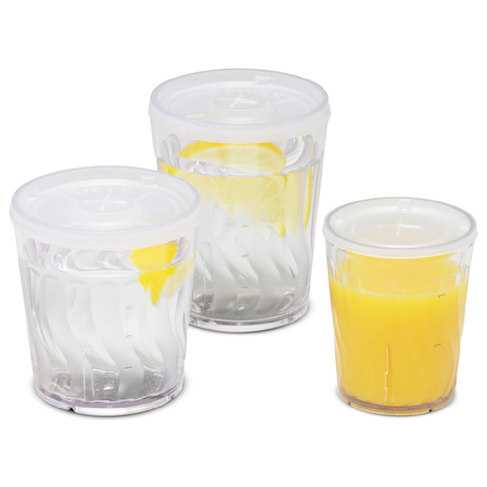 A commercial tumbler is a high-capacity, durable drinkware designed for continuous use in foodservice establishments. Made from robust, food-safe plastics like SAN, these tumblers support precise portioning, efficient cleaning, and high-volume service. The Dinex DX4GC607 tumbler offers a 6 oz. capacity, clear swirl finish, and measure markings, making it suitable for beverage presentation in cafes, bars, and catering operations—particularly in environments demanding quick turnaround and dependable sanitation.