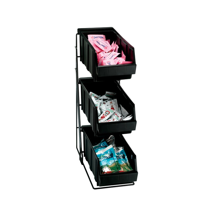The Dispense Rite WR-COND-3 Packeted Condiment Organizer Wire Rack is a commercial-grade condiment storage solution designed for high-traffic foodservice environments. Crafted by Dispense-Rite, this countertop bin rack features three individual sections with removable plastic bins, providing organized and efficient condiment accessibility. Its durable wire construction ensures longevity in busy kitchens, making it suitable for restaurants, cafeterias, and catering operations. Measuring 18-3/8 inches in height, 5-3/4 inches in width, and 15-3/4 inches in depth, this black condiment organizer optimizes countertop space while maintaining easy-standing access and quick refilling for streamlined workflow.