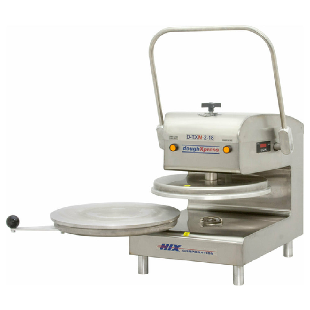 Designed for moderate throughput in commercial kitchens, the DoughXpress D-TXM-2-18 combines durable construction, precise heat control, and ergonomic operation. This commercial dough press, model D-TXM-2-18, is best suited for high-demand pizzerias and tortilla producers requiring consistent dough sheets with minimal effort and quick turnaround.