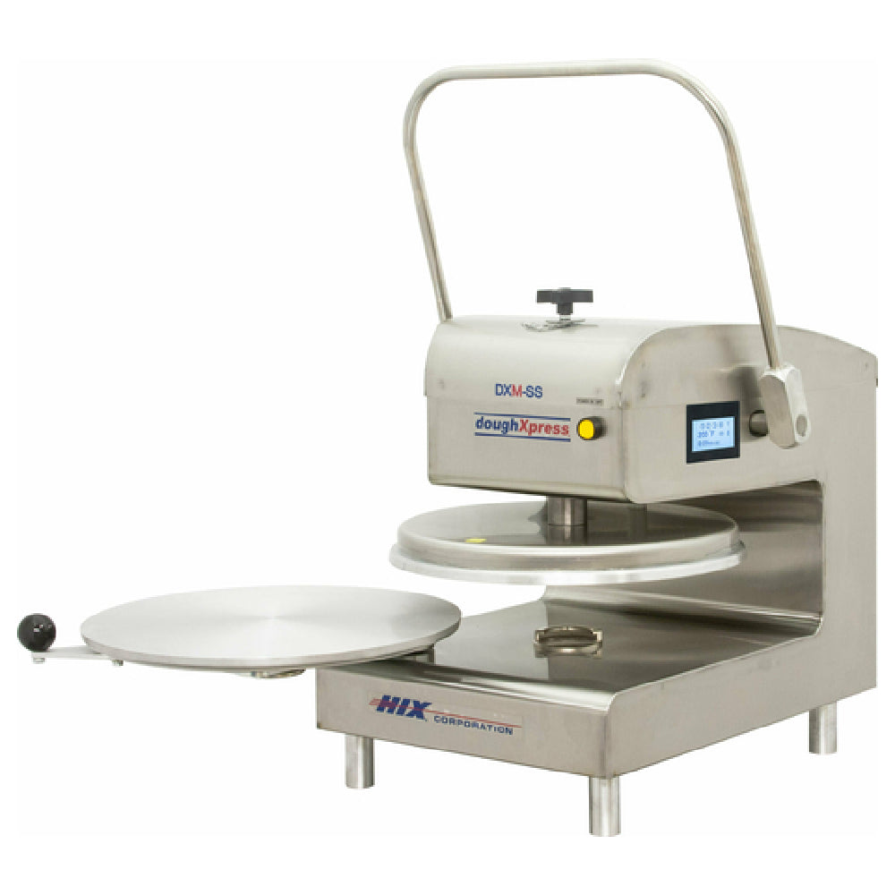 A commercial pizza dough press is a specialized machine designed to uniformly flatten and stretch large quantities of dough for pizza making. The top dough press model from DoughXpress, the DXM-SS-120, is built for high-volume pizzerias and bakeries, featuring heated upper platens for dough relaxation and consistency. It is installed in professional kitchen settings to optimize workflow, producing up to 18-inch diameter dough sheets with precise thickness adjustments. This equipment supports efficient production lines, ensuring consistent quality in high-demand foodservice operations.