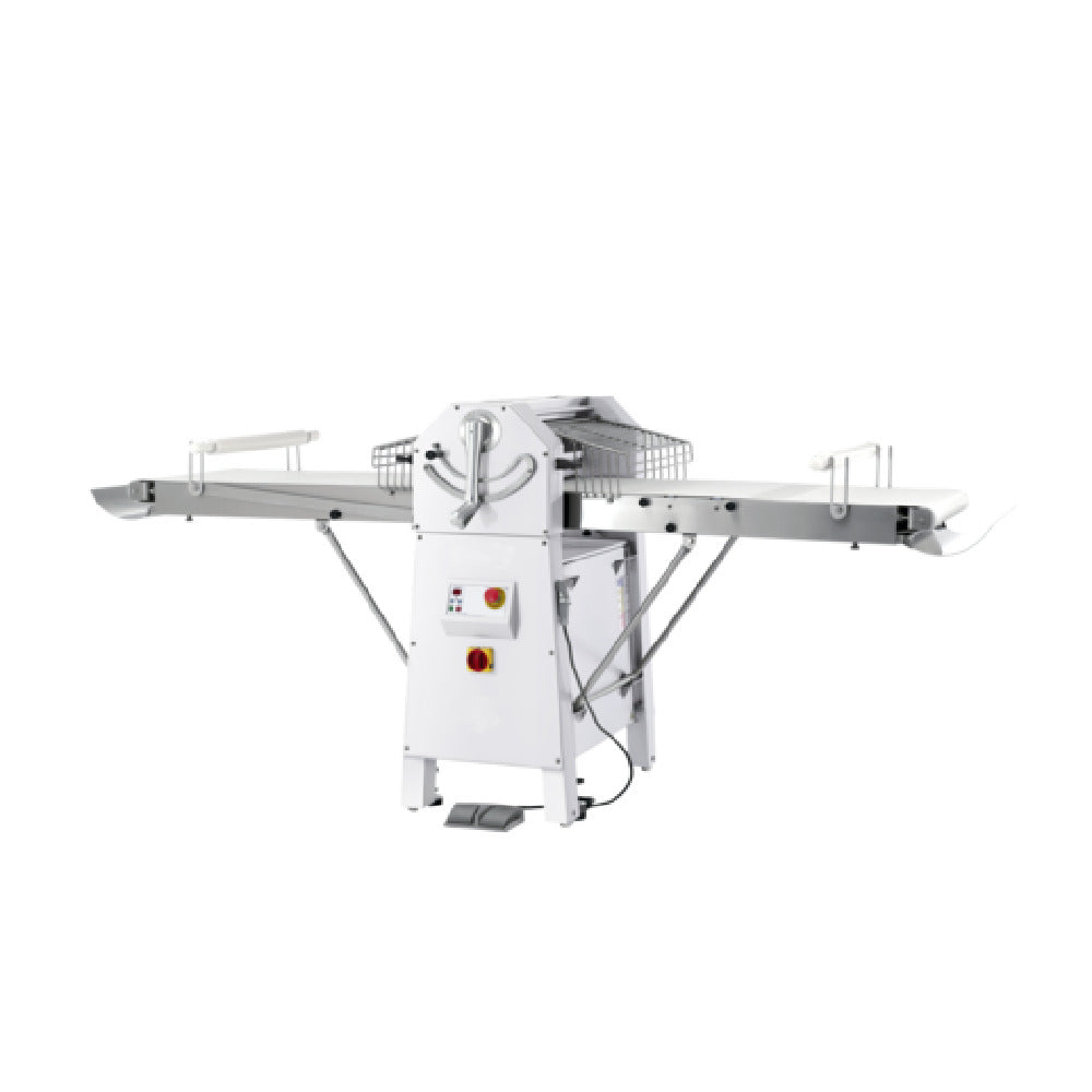 Ideal for bakery, pizza, and pasta production facilities requiring consistent dough sheet thickness and reliable performance.