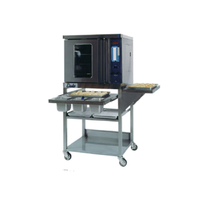 A commercial oven stand is a sturdy, specially designed platform manufactured to support bakery or cooking equipment in high-volume foodservice facilities. It provides stable support, optimal height, and organized storage options to enhance efficiency. The Duke 59-BS oven stand supports baking and roasting in environments such as bakeries, cafeterias, and restaurant kitchens, with dimensions and features tailored for medium workloads, making it ideal for support stations and oven integration in culinary operations.