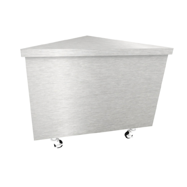 The Thurmaduke™ Triangle Unit offers a 90° corner configuration with a stainless steel top and enclosed body, optimized for seamless integration into foodservice workflows. Its mobile design with gray poly swivel casters ensures easy repositioning and stability, while the 20ga stainless steel enclosure provides durability against daily use. Designed for high usability in medium-volume kitchens, it supports efficient corner configurations, enhancing space management and workflow flow.