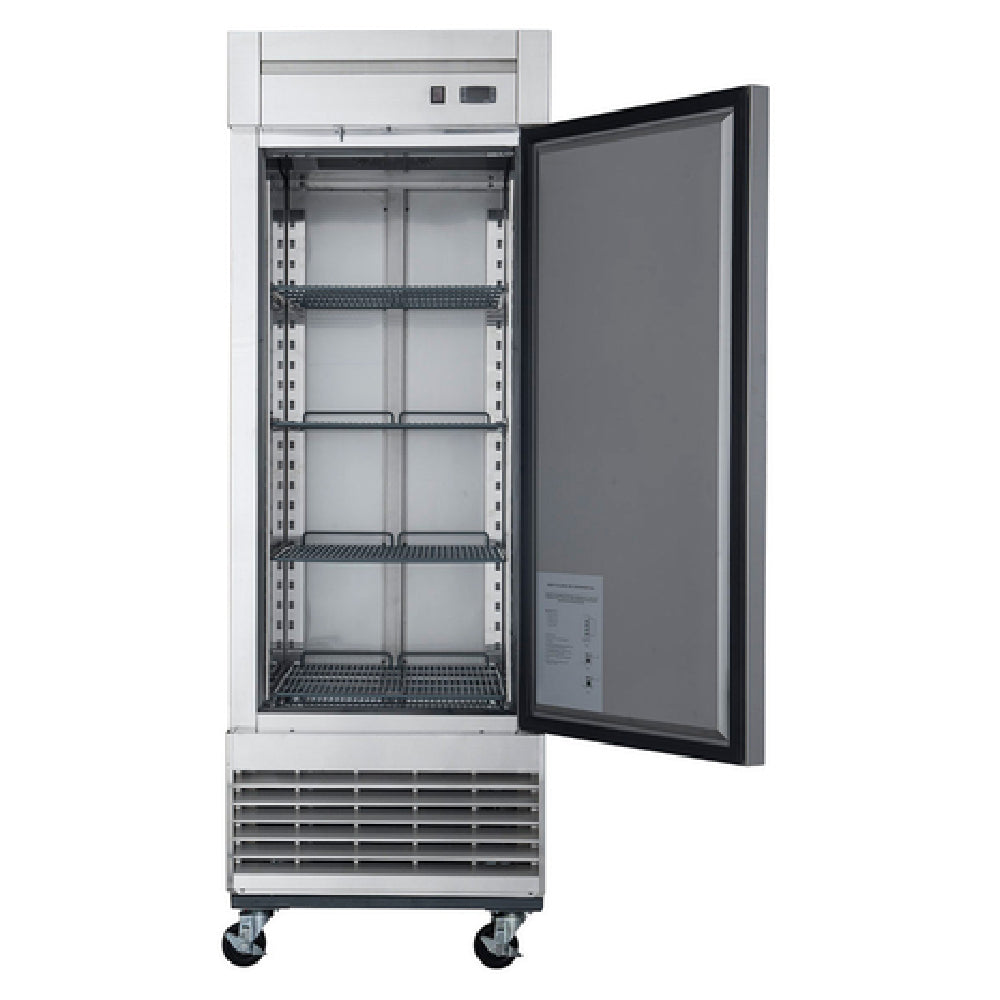 This reach-in refrigerator combines advanced refrigeration with user-centric design, making it suitable for medium-volume restaurant kitchens, cafeterias, and convenience stores. The unit’s four adjustable shelves optimize storage flexibility, while the reversible door enhances space management. Its all stainless steel construction ensures durability amidst daily use, with automatic defrost systems reducing maintenance needs. Designed for reliable operation, it supports efficient workflow and food safety compliance in commercial settings.