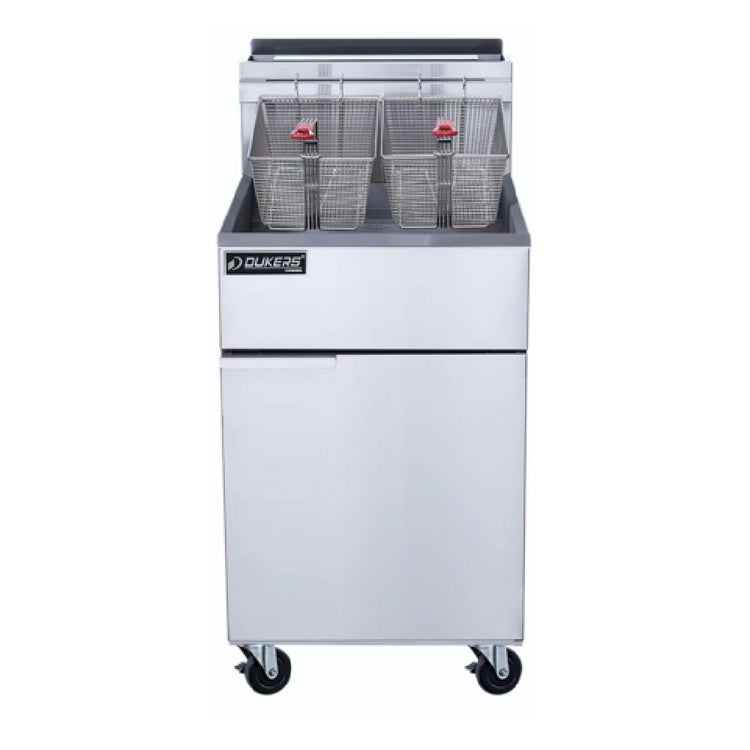 The Dukers Appliance Co. USA Ltd. DCF5-LPG gas fryers are built for medium-output commercial kitchens requiring reliable, high-capacity deep frying. With stainless steel durability, efficient heat transfer, and precise millivolt temperature controls, this model excels in restaurant and cafeteria environments. Its robust design supports demanding workloads with ease of cleaning, integrated storage, and fuel efficiency, making it suitable for mid-volume foodservice operations involving consistent frying cycles.