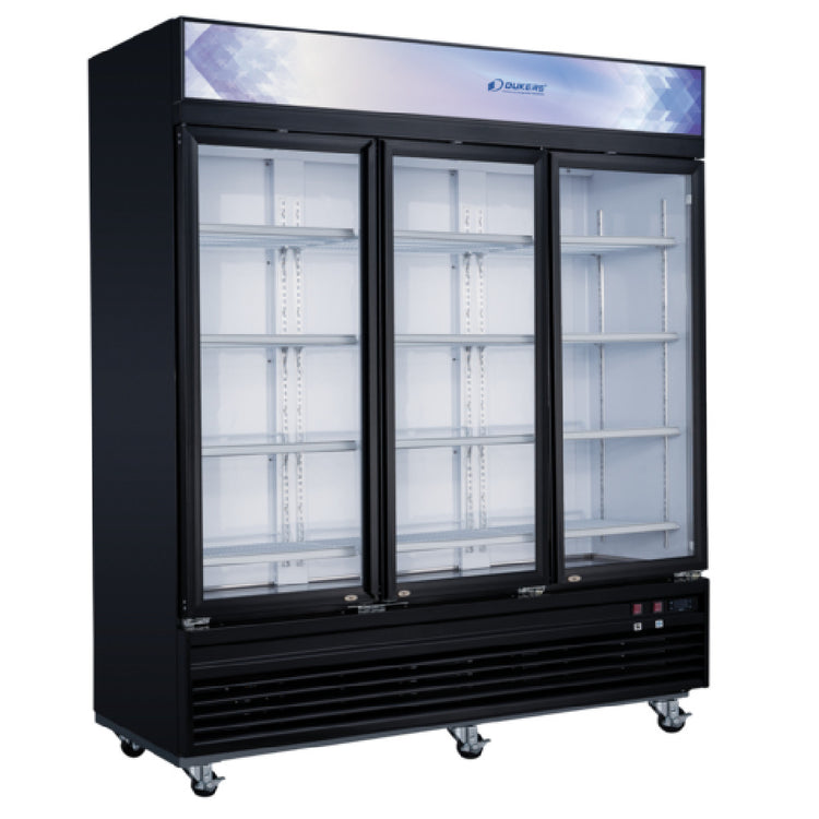 A commercial freezer is a high-capacity refrigeration unit designed for professional foodservice environments to store frozen products efficiently. The Dukers Appliance Co. USA Ltd. DSM-69F is a three-section reach-in freezer featuring bottom-mounted self-contained refrigeration, hinged tempered glass doors, and digital controls, suitable for medium-volume operations such as restaurants, delis, or convenience stores. It maintains temperature ranges from 0°F to -8°F, ensuring optimal food preservation. With its durable construction, adjustable shelving, and energy-efficient refrigeration, this model supports consistent frozen storage and streamlined workflow, making it ideal for high-turnover foodservice settings requiring reliable and easy access to frozen inventory.