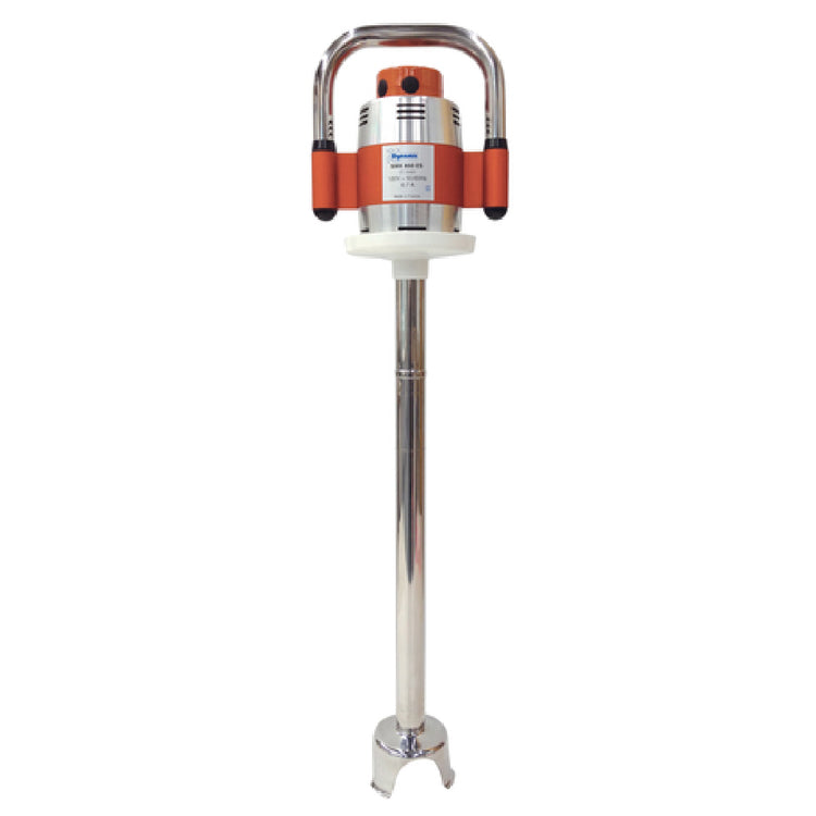The Dynamic MX001ES SMX850ES Mixer Single Speed 27" Stainless Steel Shaft & 4.5" Dia. Detachable Bell is a professional-grade immersion mixer designed for high-capacity food processing environments. Engineered by Dynamic USA, this commercial handheld mixer features a 27-inch stainless steel shaft and a detachable 4.5-inch diameter bell, suitable for mixing large batches up to 75 gallons (300 liters). The device operates at 11,000 RPM with an 850-watt motor, providing consistent, powerful performance ideal for industrial kitchens, large-scale catering, and food manufacturing applications. Its titanium plated cutter blade enhances durability and maintains cutting precision during extended use. Designed for efficiency in demanding foodservice operations, it offers a safety and continuous run switch for reliable operation and ease of maintenance.