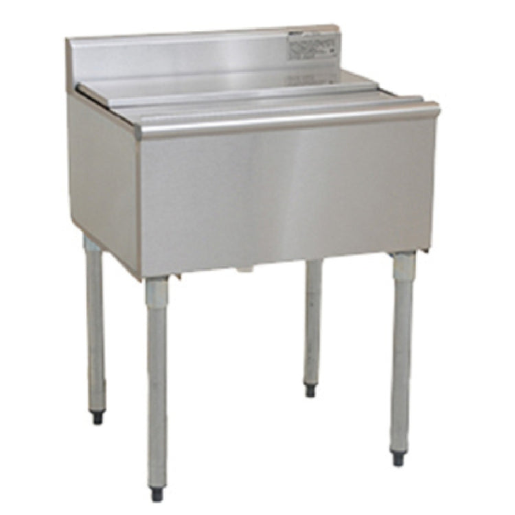 The Eagle B2IC-12D-18 1800 Series Underbar Ice Chest Unit is a commercial-grade insulated ice bin designed for efficient beverage service in foodservice establishments. Measuring 24 inches wide by 20 inches deep with a 12-inch depth, this unit offers a 55 lb. capacity, making it suitable for moderate-volume bartender workflows. Constructed from durable 304 stainless steel and galvanized components, it provides resistance to corrosion and ensures long-term sanitation. The unit features a centered 1-1/2 inch drain for easy maintenance, a sliding glass cover for convenient access, and a bullnose front edge for safety and aesthetics. Its NSF-compliant design makes it ideal for high-volume bar and beverage stations requiring reliable ice storage and access in a compact footprint.