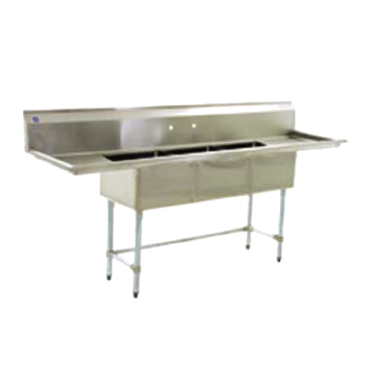 Eagle BPS-1545-3-15-FC 75 Inch Sink Three Compartment with (2) Drainboards Stainless Steel