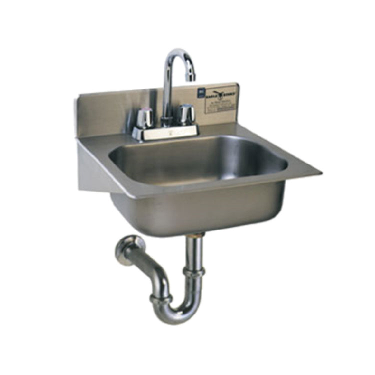 The Eagle HSAE-10-FA-1X Hand Sink Wall Mount is a commercial-grade handwashing unit designed for demanding foodservice environments. Constructed from durable 304 stainless steel, this wall-mounted sink features a 14-inch wide by 10-inch front-to-back bowl with a 5-inch depth, optimized for ergonomic operation and compliance with sanitation standards. Equipped with a 4-inch high backsplash and an included deck-mounted gooseneck faucet, this unit provides a reliable handwashing station suitable for high-traffic kitchens, food prep areas, and industrial settings requiring efficient workflow and sanitary operations.