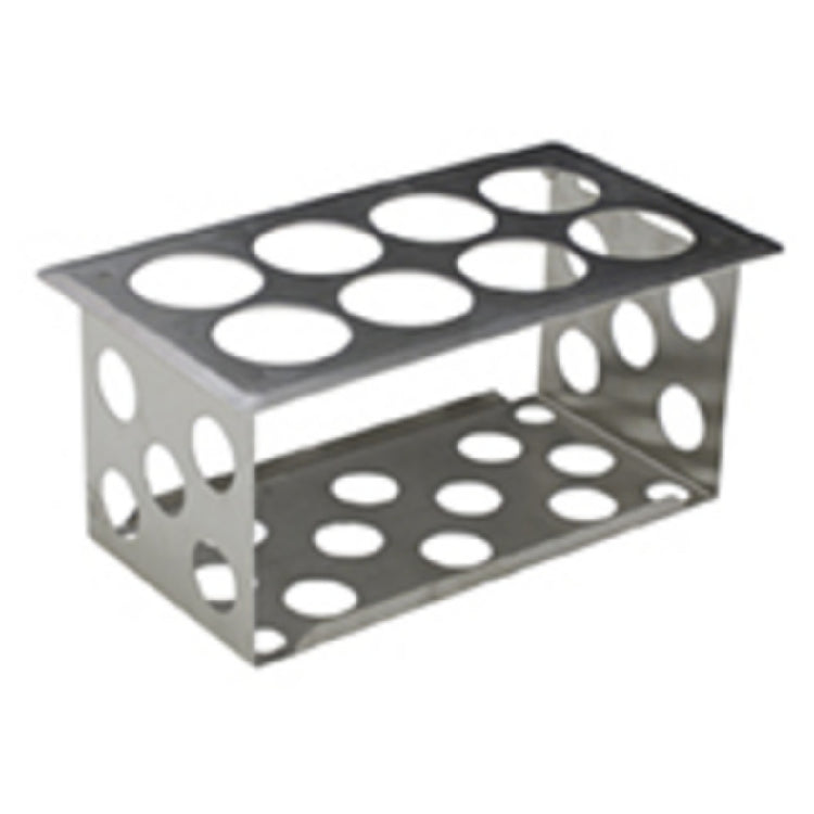 The Eagle SBH-1/3 bottle holder offers a resilient stainless steel design with eight compartments, facilitating streamlined condiment organization. Its 12-1/2" W x 7" D x 5-1/2" H dimensions optimize space utilization, while the 2-7/16" diameter holes ensure secure fitment for condiment dispensers. Designed for easy cleaning and maintenance, it supports efficient workflow in busy foodservice environments, particularly where quick refill and sanitation are prioritized.