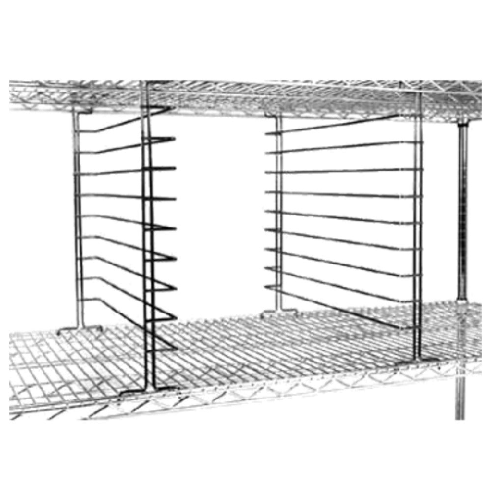 A commercial tray slide is a metal shelving accessory designed to facilitate the organized storage and easy retrieval of multiple trays within foodservice establishments. Built to withstand frequent use, these slides are typically constructed from corrosion-resistant materials like chrome-plated steel, optimized for high-volume kitchens, buffets, and catering operations. The Eagle TS24-C tray slides, specifically, support nine trays with precise spacing, making them suitable for medium-demand environments such as hotel banquets or institutional cafeterias. Installed directly onto shelving frameworks, they enable efficient workflow and space management in busy food prep and service areas.