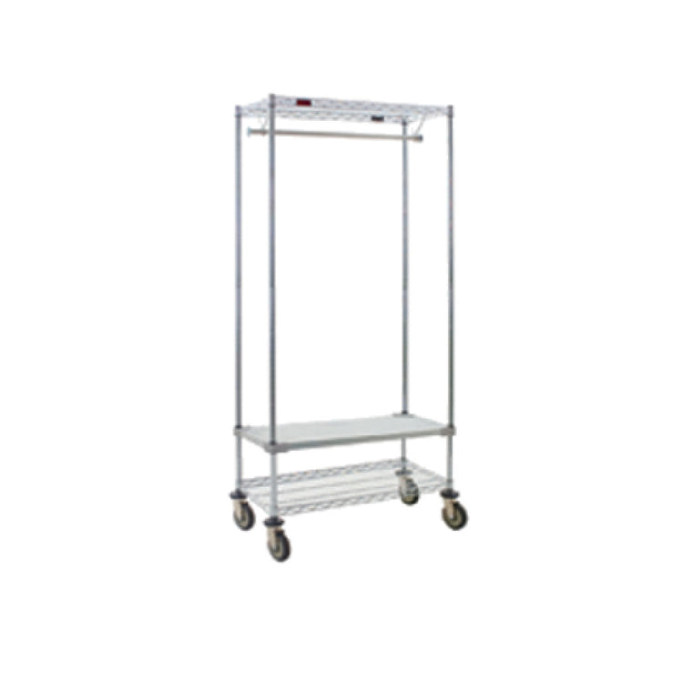 The commercial garment storage rack is a heavy-duty, mobile shelving unit designed specifically for organizing and transporting clothing or fabric items in professional environments. It typically features welded wire or solid shelving, adjustable elements, and casters for mobility—making it ideal for laundry services, hospitality, and retail settings. The Eagle URS1848C Garment Rack is a prime example, equipped with multiple wire shelves, a hanger bar, and a robust finish suitable for high-volume use in busy foodservice and hospitality operations—perfect for efficiently managing garments in high-traffic areas and supporting streamlined workflow processes.