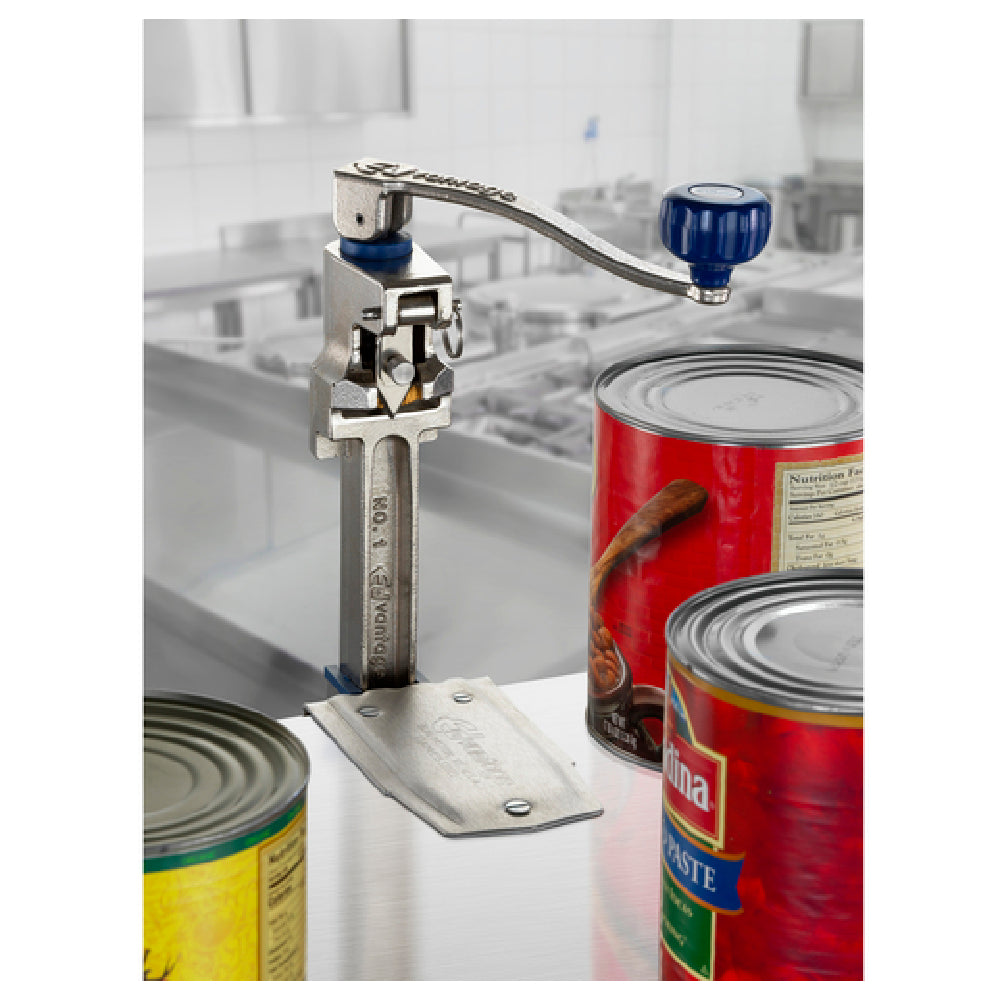A commercial can opener is a heavy-duty foodservice tool designed to open cans efficiently and safely in high-volume settings. The Edlund EDV-1NB is an example of a top-rated table-mounted model, featuring durable construction, blade longevity with Edvancoat™ technology, and ergonomic operation suited for bustling kitchens. Used primarily in restaurants, cafeterias, and institutional kitchens, it supports continuous can-opening needs, ensuring quick and sanitary handling of canned ingredients in medium- to large-scale food preparation environments.