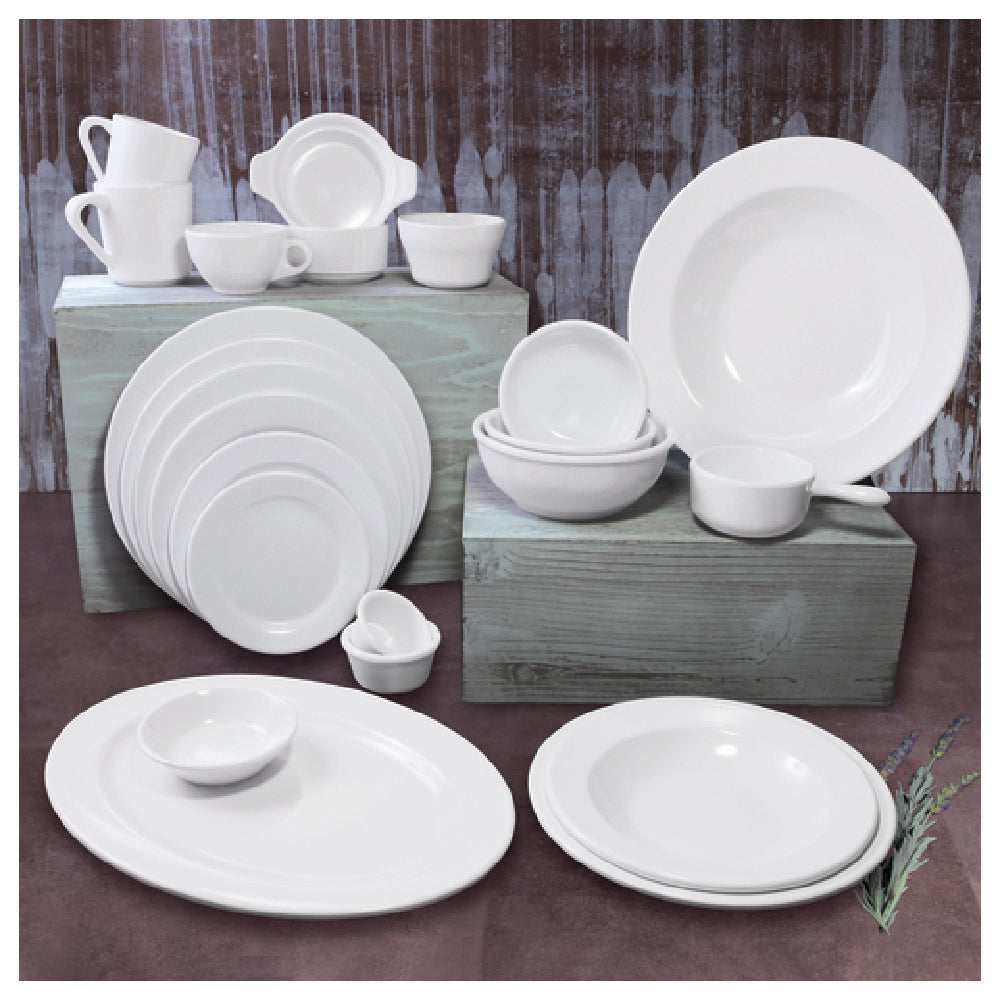 Elite Global Solutions, D5R-W, Casserole, 14 oz., 5" dia. x 2-3/8"H, round, without lid, lug handles, break, chip, stain & scratch resistant, dishwasher safe, BPA free, melamine, Merced, white (6 each per case)