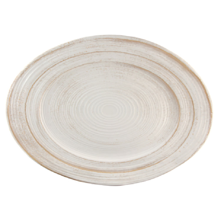 Elite Global Solutions, M1521OVST-OWD, Serving Dish, 21"L x 15"W x 1-3/4"H, irregular oval, break, chip, stain & scratch resistant, dishwasher safe, BPA free, melamine, off white stoneware design, Della Terra