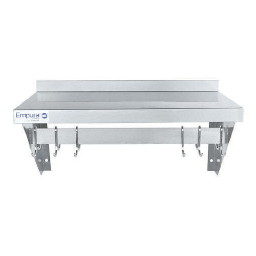 Empura Stainless E-WPS-1248 offers durable construction with stainless steel and galvanized hooks, supporting heavy-duty kitchen storage. Its practical design with a built-in shelf enhances workspace organization, while its corrosion-resistant materials reduce maintenance. Compared to similar models, it provides a larger hanging capacity and a more robust mounting structure, improving operational efficiency and ensuring long-term reliability in demanding culinary environments.