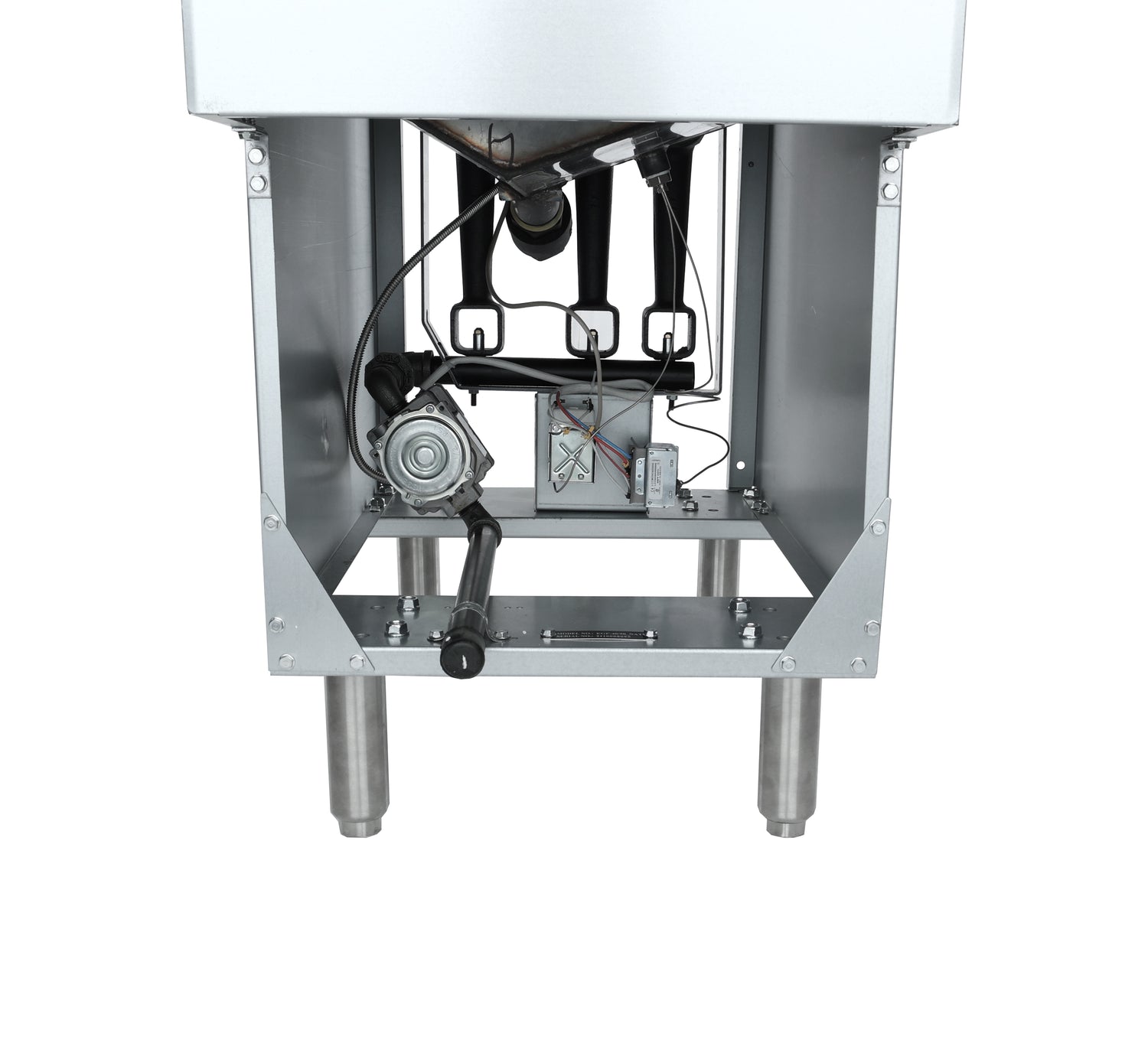 The Empura EGF-40/50_NAT gas fryer is engineered for consistent performance in commercial foodservice settings, featuring stainless steel front construction for durability, galvanized sides for corrosion resistance, and integrated thermostatic controls for accurate temperature management. Its large 40 lb capacity supports medium throughput frying, while the cold zone reduces oil breakdown and extends oil life. Designed for ease of maintenance, it includes a full port drain valve for quick oil disposal and corrosion-resistant cast iron burner tubes for long-term durability. Its built-in stainless steel heat exchanger enhances heat transfer efficiency, making it suitable for fast-paced kitchens requiring reliable throughput and minimal downtime.