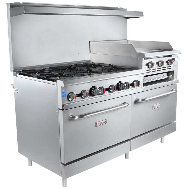 Empura Equipment EGR60-GS24_NAT 60 Inch Gas Range with 2 Standard Ovens and 24 Inch Right Griddle