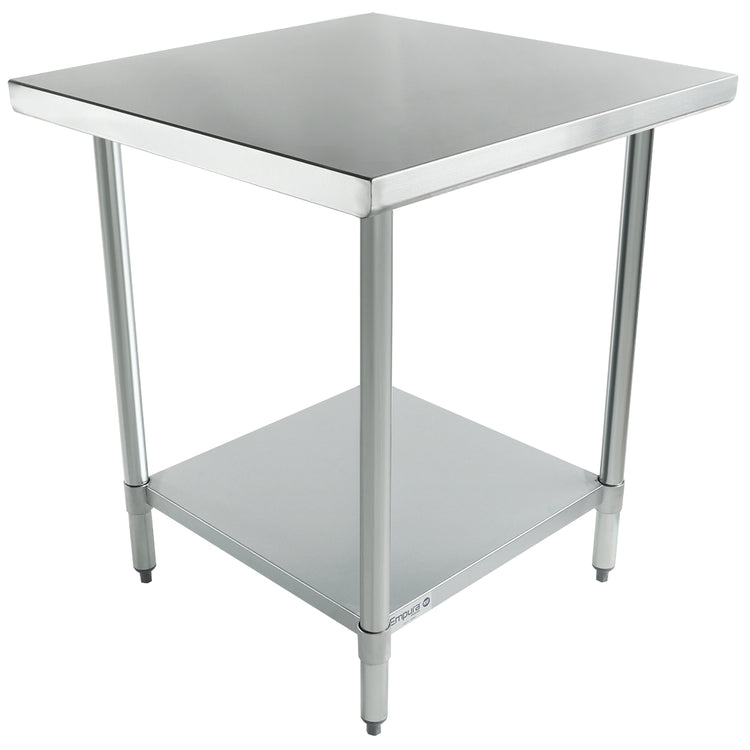 Empura, EWT3030, Work Table, 30"W x 30"D x 35"H, economy duty, no backsplash, plastic adjustable bullet feet, galvanized steel 1-5/8" diameter leg, galvanized steel hat channel, 18 gauge under shelf, galvanized steel under shelf, 18 gauge top shelf, 430 stainless steel top shelf, NSF, Empura Stainless