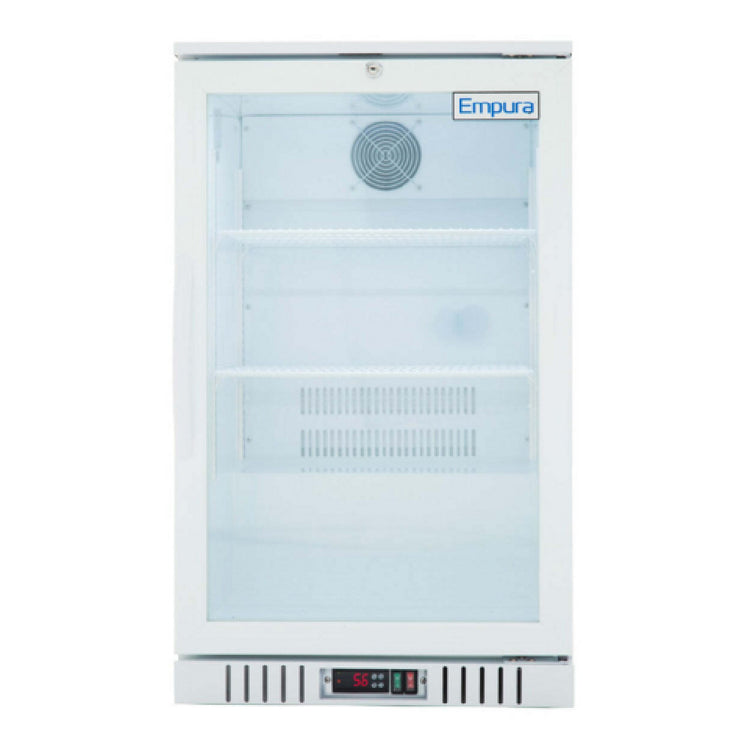 Empura, EGM-7W, Counter Top Merchandiser, 1 glass swing door, 25 9/16"W x 25 1/8"D x 39"H, 7 cu. ft. capacity, 2 shelves, stainless steel white exterior and interior, 33-41 F temperature, 115v/60hz/1ph, NEMA-5-15P power cord, electronic thermostat with digital LED display, 60 mm insulation, magnetic gasket replaceable without tools, auto defrosting and evaporation, HC refrigerant, ETL, ETL Sanitation, Tested and conforms to NSF-7 Standards, Empura Refrigeration