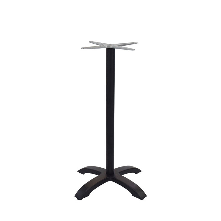 The Emuamericas LLC A1364-24 Zak Table Base Bar Height 4-cross Base is a commercial-grade steel table support designed for versatile indoor and outdoor use in foodservice establishments. Crafted from durable cast aluminum with PVC foot caps, this bar height table base features a 26" x 26" base spread, supporting tops ranging from 26" to 32" in diameter, and 28" square or 24" x 30" rectangular surfaces. Its robust construction ensures stability and resistance to environmental factors, making it suitable for high-traffic hospitality settings where durability and functionality are essential for supporting various tabletop configurations.
