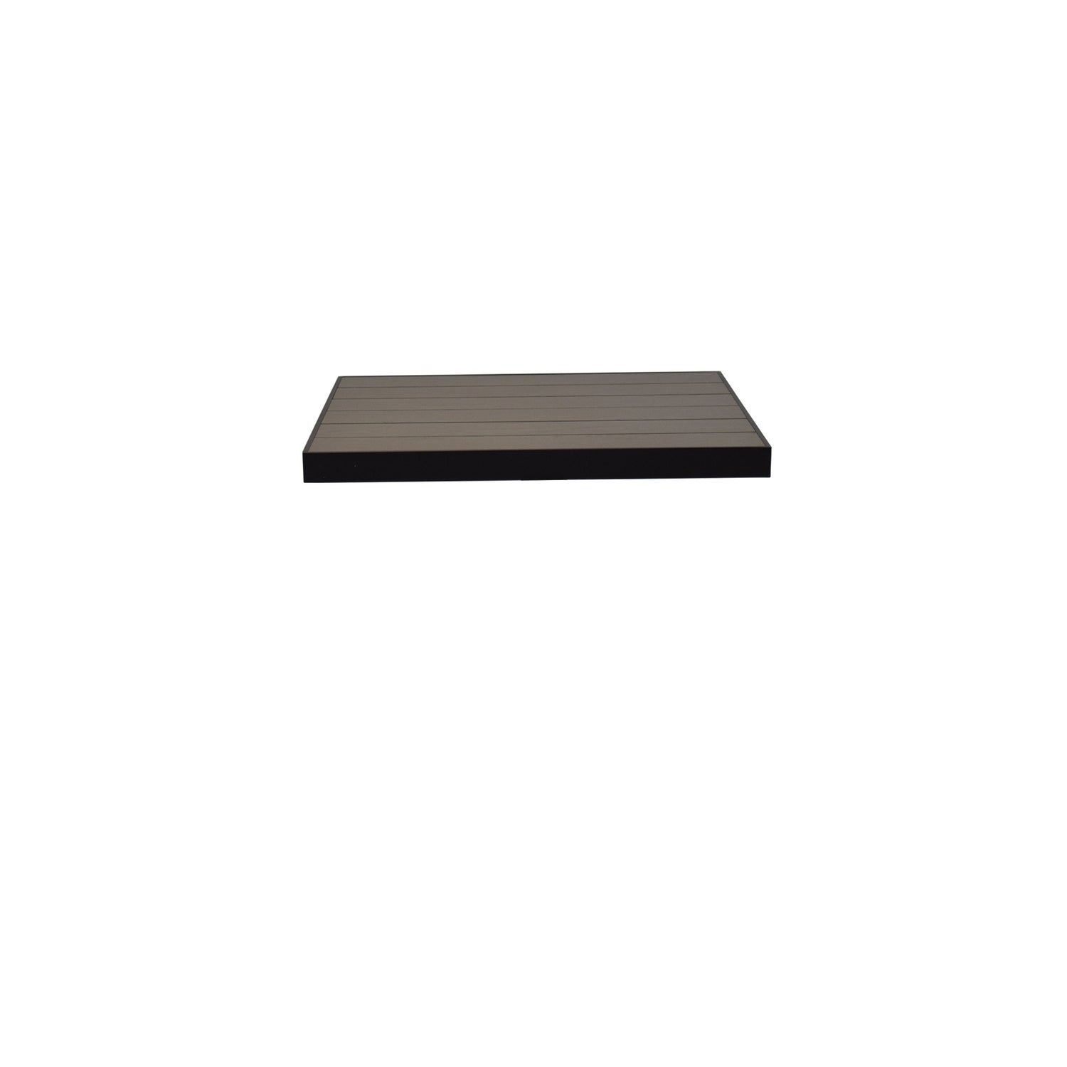 A rectangular, flat, black floating shelf reminiscent of a Sid Table Top is centered on a plain white background. The smooth surface and slightly rounded edges feature horizontal grooves, evoking the look of wood-look aluminum used in outdoor tables.