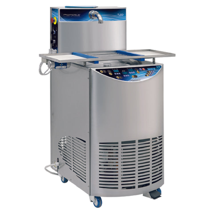A commercial tempering machine is a specialized piece of equipment designed for precise control of chocolate and confectionery heating and cooling processes. It maintains accurate temperature profiles to produce glossy, well-tempered products with optimal texture and stability. Installed in bakery, pastry, or chocolate production facilities, the Erika Record T20 Pomati® Tempering Machine T20 offers continuous operation with a self-contained refrigeration system and programmable controls, making it suitable for medium-volume confectionery production, including chocolate coating and molding tasks.